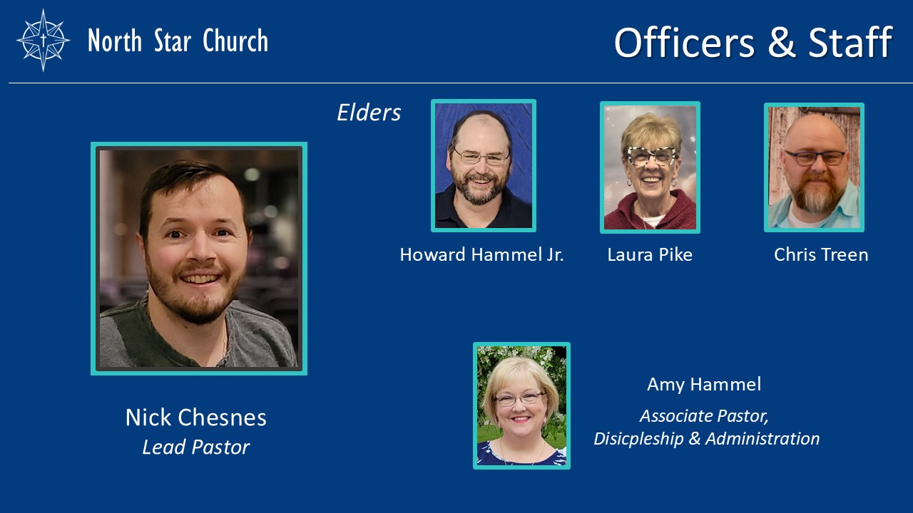 Nick Chesnes, Lead Pastor EmailAmy Hammel, Associate Pastor of Discipleship & Administration EmailElders Email